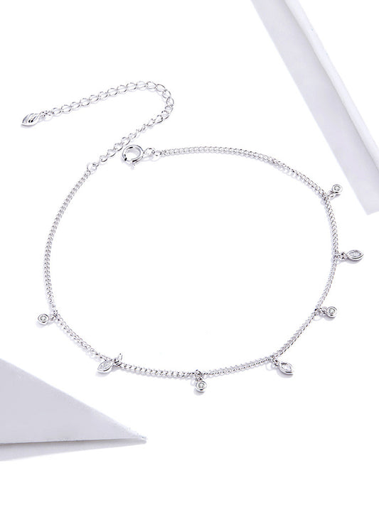 S925 Silver Platinum Plated Cubic Zirconia Tassel Adjustable Anklet Jewellery