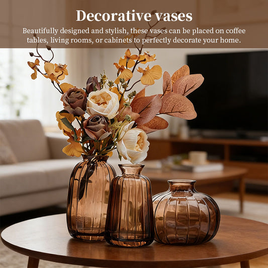 Vintage Glass Hydroponic Vase Trio Home Living Room Decorative Display Set
