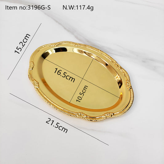 Vintage Embossed Silver Tray 304 Stainless Steel Dessert Snack Jewellery Storage