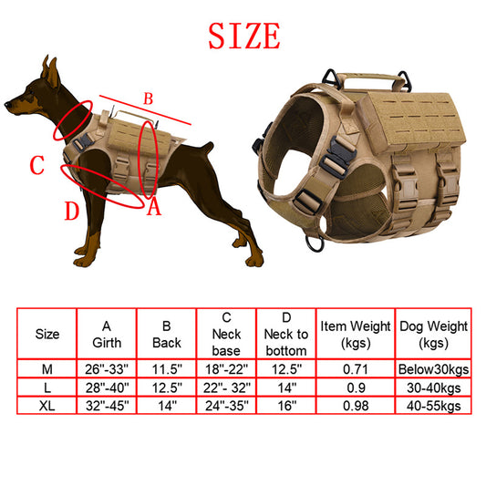 Outdoor Dog Tactical Vest Adjustable Harness Black Military Design Clothing