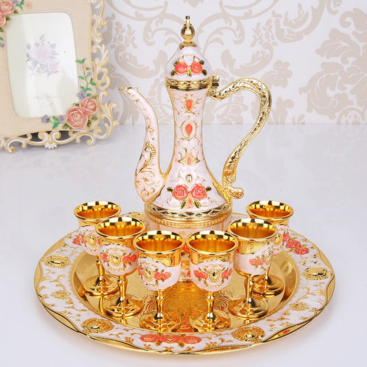 Retro Palace Wine Set Zinc Alloy Gold and Silver Plated 8-Piece Gift Set with Tray