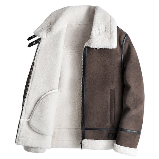 Men's Faux Leather Motorcycle Jacket with Lapel Front Zip Pocket in Black or Brown