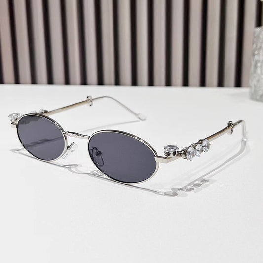 Women's Floral Diamond Inlaid Metal Frame Sunglasses UV Protection Stylish Eyewear