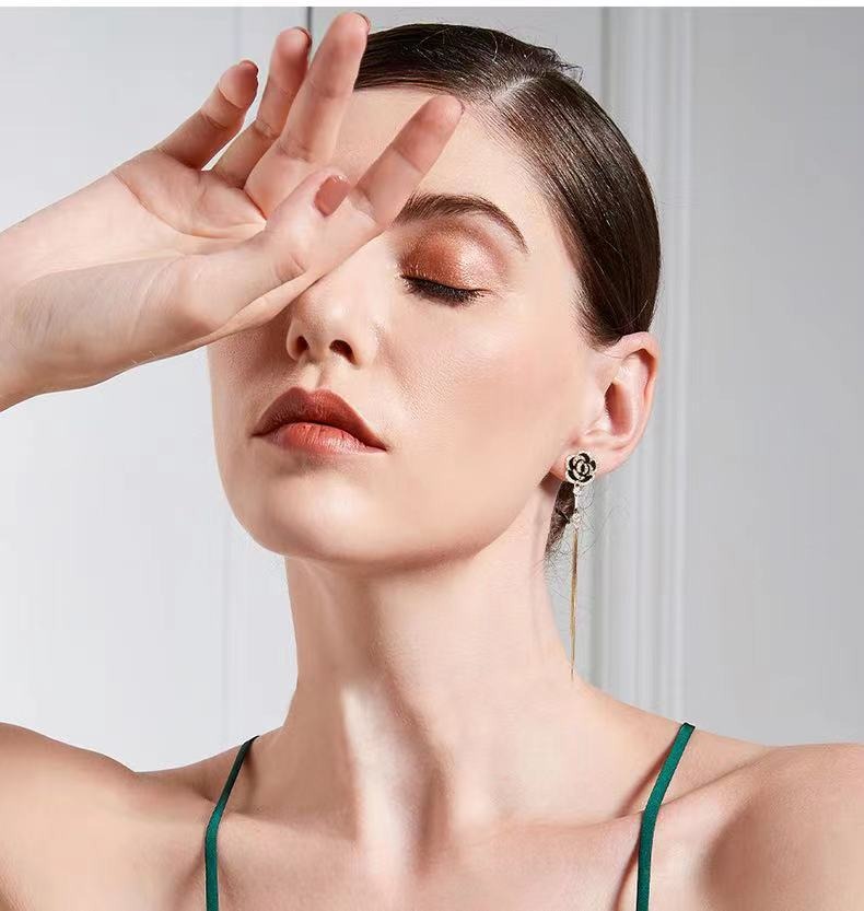 Black Rose Tassel Earrings Micro Inlaid Zircon Stone Design Versatile