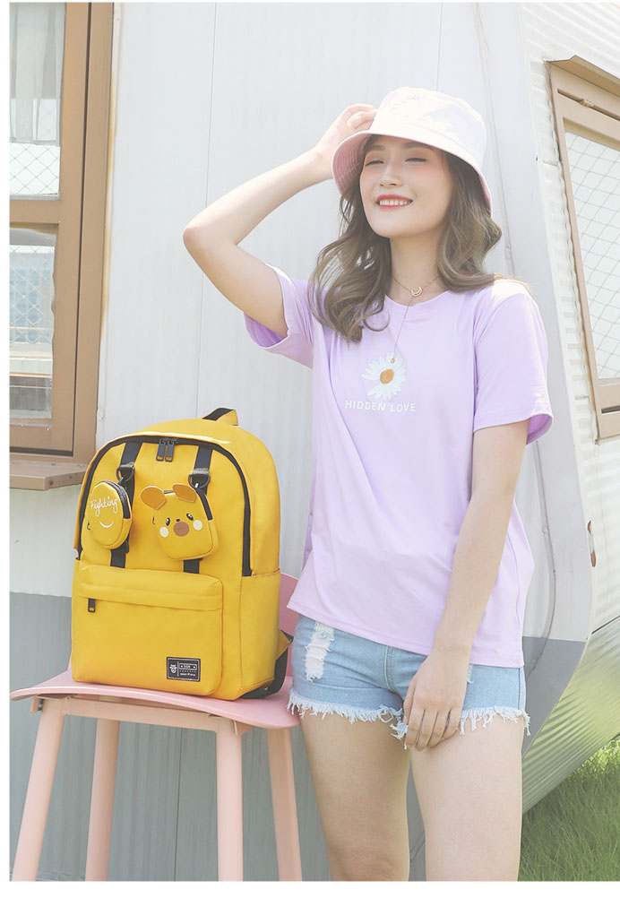 Junior High School Girl Oxford Backpack Lightweight Durable Spacious Zippered Pockets