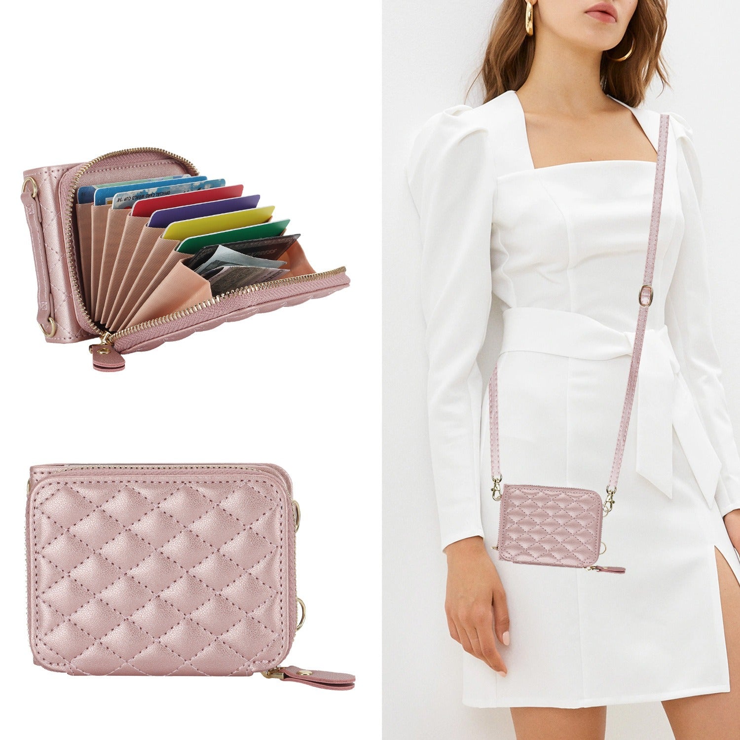 - ✨ Crossbody & Wristlet Straps: Includes a removable crossbody strap and a wristlet strap for hands-free carrying.